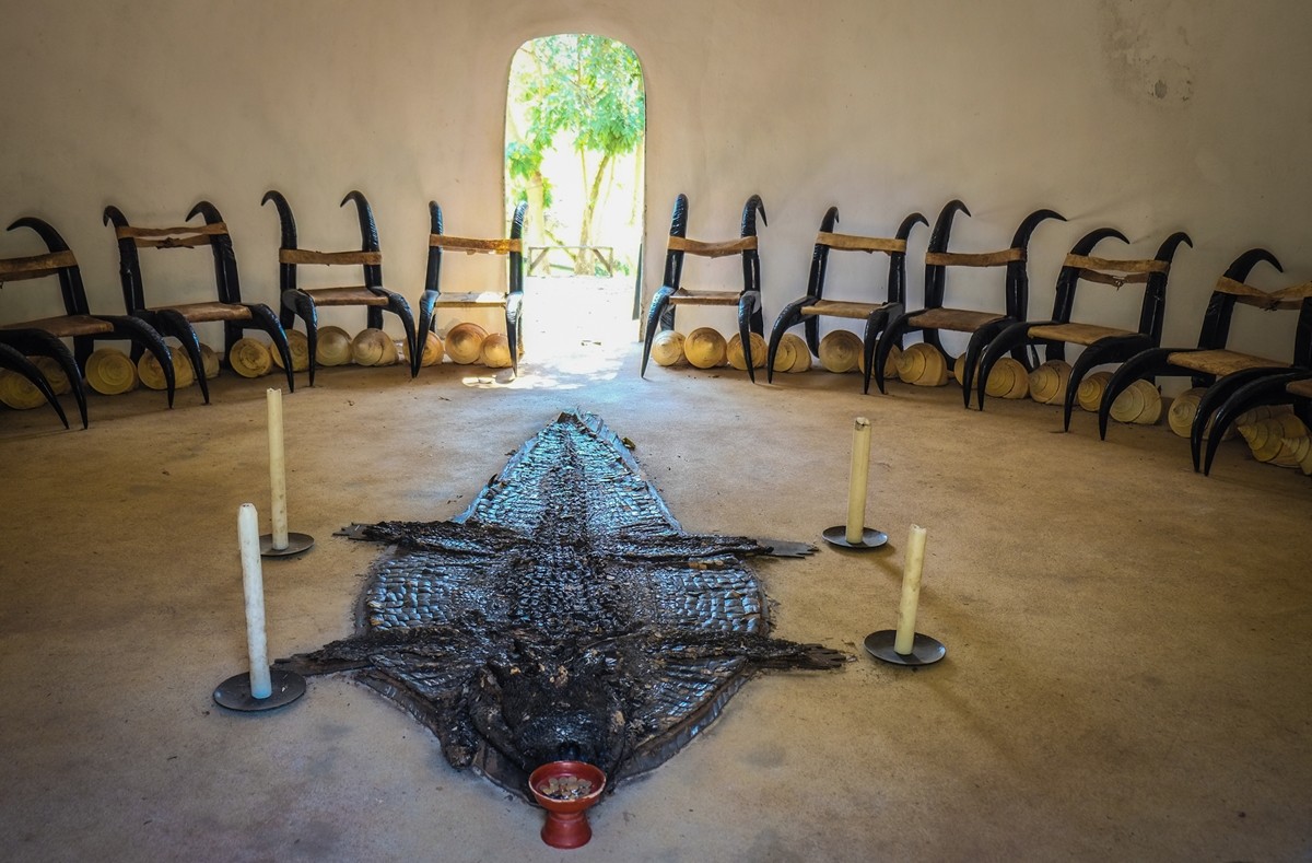 A stunning teak hall, reminiscent of a Thai temple, greets visitors…