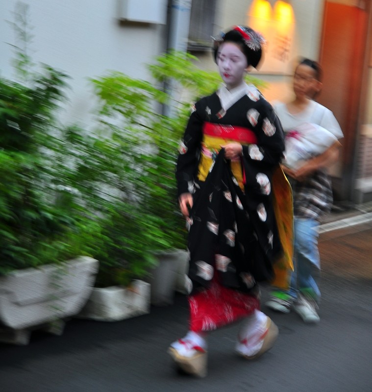 Great photos! The first image shows how quickly she was walking. Both Geishas look so beautiful and mysterious.