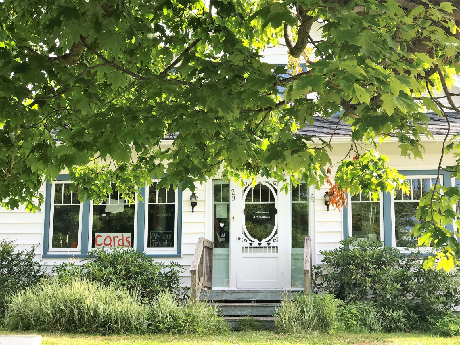 When visiting Annapolis Royal don’t miss the opportunity to experience the artwork, the handmade cards, and the unique African bead jewellery at the Leslie Erickson Art Gallery. Between mid-May and mid-October, the gallery is open daily from 10 am to 5 pm. On Saturday mornings between mid-May and mid-October, you’ll find Leslie displaying a selection of her handmade cards and African jewellery inside the Masonic Hall building at the Annapolis Royal Farmers and Traders’ Market. You can reach Leslie by phone at 902-532-1359. Browsers are welcome.