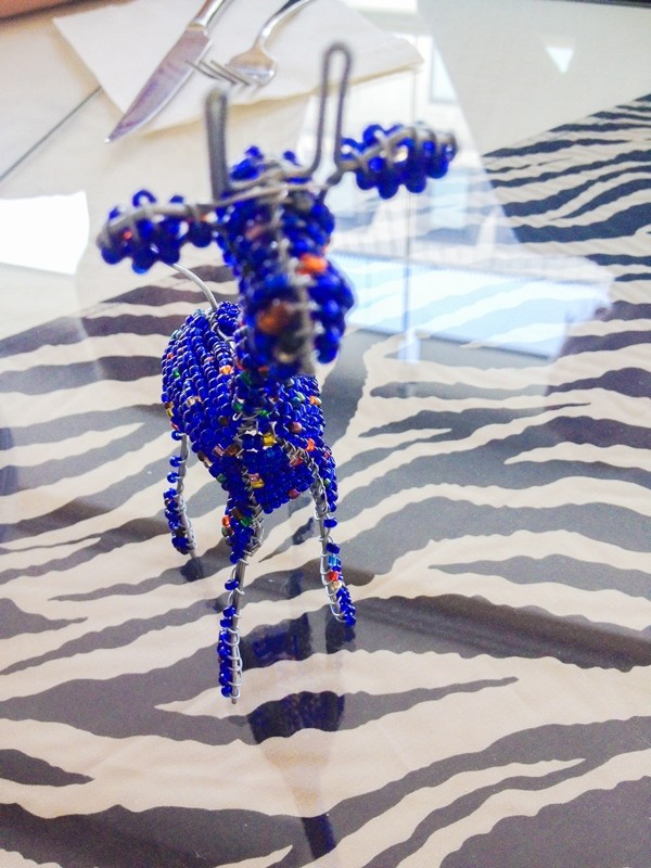 Located on the 5th floor of a nondescript building directly across the street from the Saudi Embassy in Itaewan, I was immediately taken with the streaming light. Each tabletop was outfitted with a fun zebra patterned tablecloth. Gorgeous, glittery, beaded giraffes shared out table, added to the ambience. A large, beautiful shot of two giraffes graced one wall.