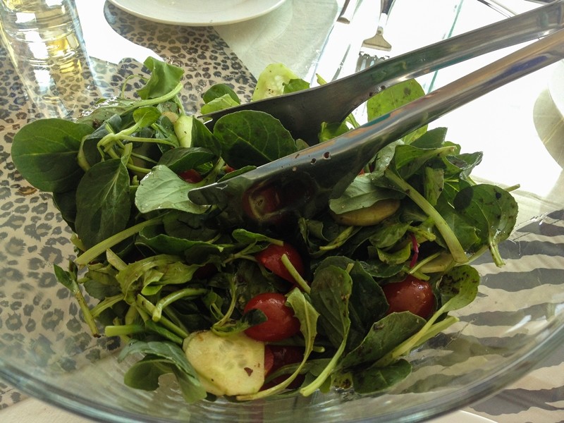 Next up was a fresh salad with a light dressing, and a platter of grilled boerewors – South African sausage. The sausages reminded me of one that we call Lunenburg sausage at home, and a favorite of mine. Both the salad and the sausage were prepared perfectly.