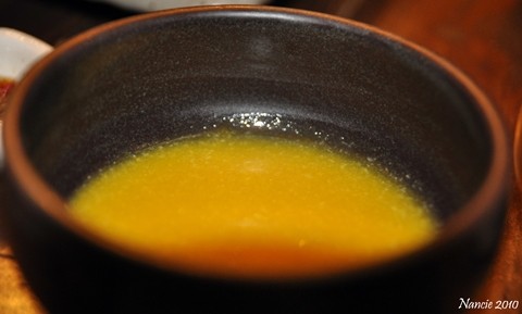 Next up were these two soups. The pumpkin porridge/soup is served hot. The soup is creamy and very thick. Personally, I’m not a fan of this soup. However, if you like pumpkin, give it a try. The kimchi water soup is more to my liking. The flavour is a bit tart. This is a wonderful soup for a hot summers day.