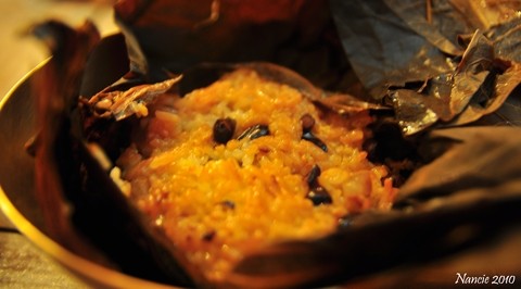 I loved this dish. The rice and vegetables are wrapped in a lotus leaf, and then steamed. The steamed rice is a little chewy, and although steamed, almost appears to be roasted. This rice is so yummy!