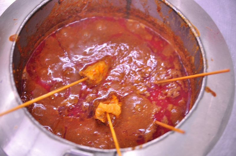 I’ve never heard of cooking satay by plunging it into the peanut sauce, but it sounds exactly like something I’d find tasty. I’ll have to remember to try this in Melaka.